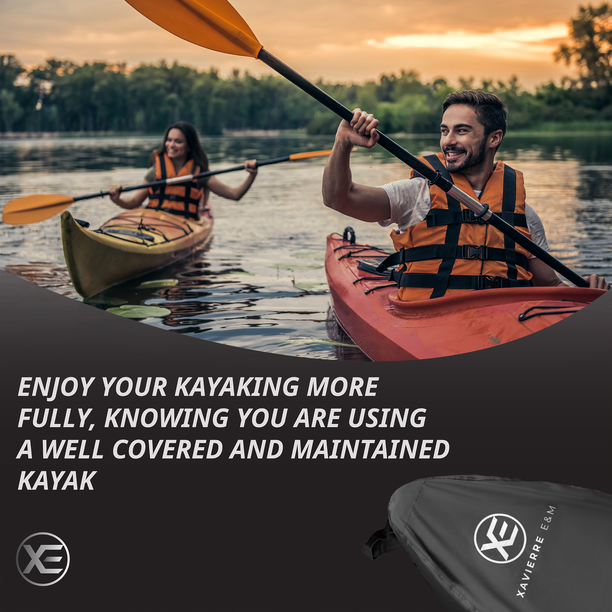HEAVY DUTY COVER - This cover is made with Durable 600D oxford & Silver coating heavy-duty marine-grade polyester fabric that is both waterproof and UV resistant. It keeps your kayak safe and dry in any weather.